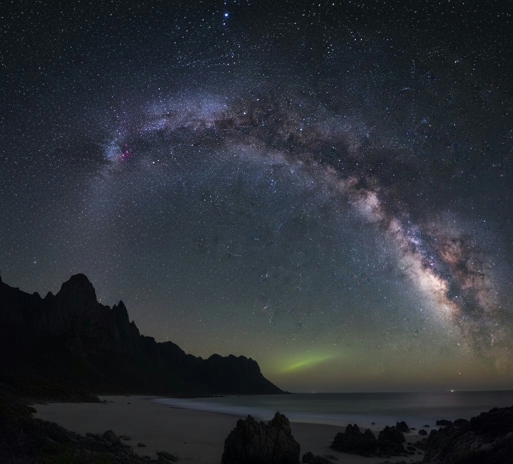 Lautan pasir Bromo memberikan latar belakang yang dramatis untuk fotografi astronomi. Area ini sudah sangat terkenal secara internasional sebagai titik terbaik untuk memotret pusat galaksi kita.
